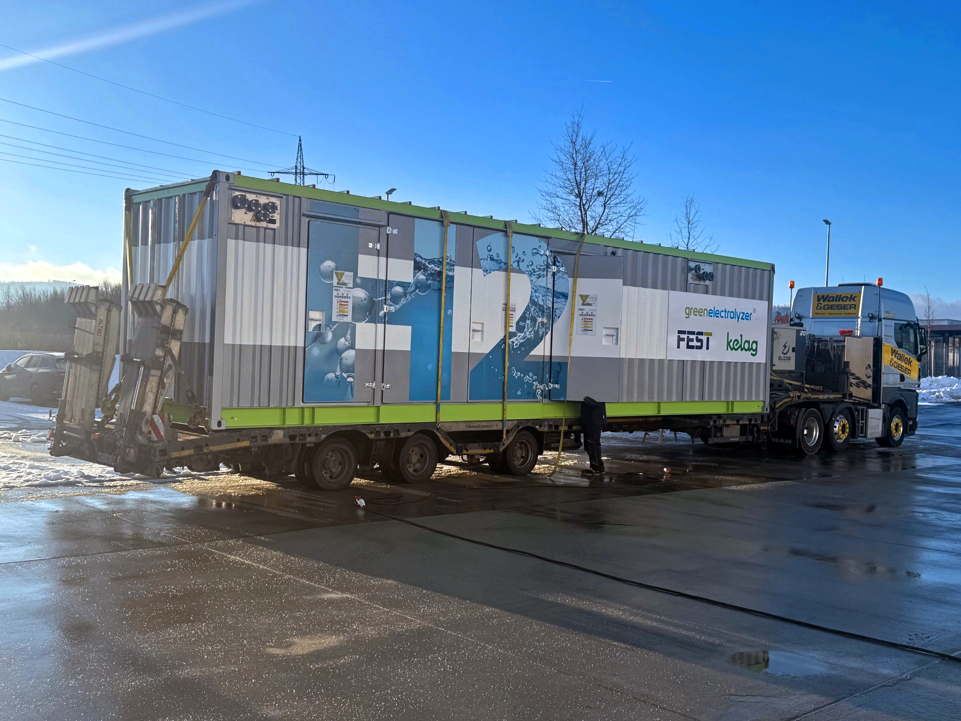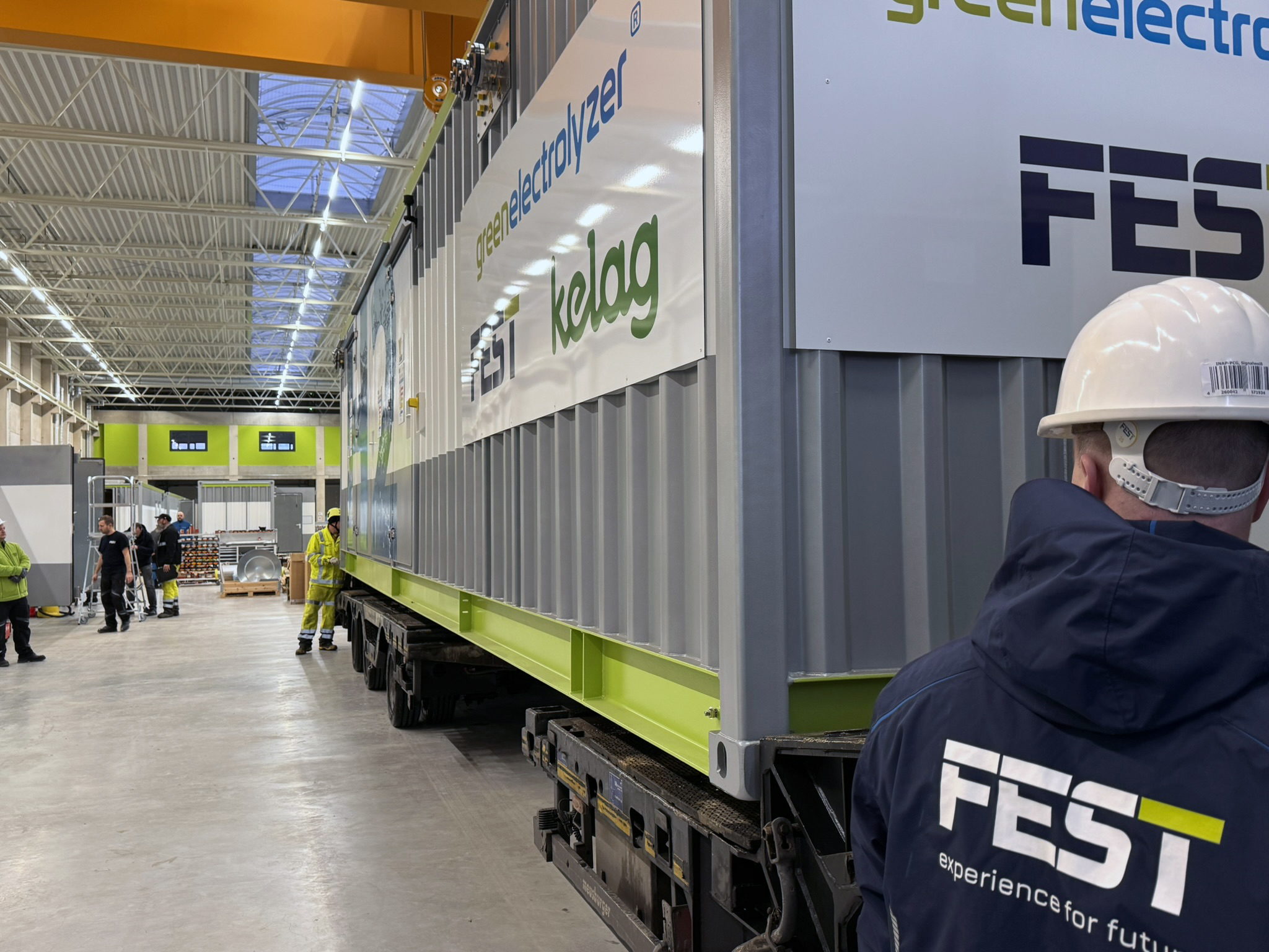 The transportation of our 2 MW electrolysis plant for Kelag started a few days ago with the destination Arnoldstein in Carinthia. From project start to delivery: 7 months – planned, implemented and completed on time. For us at FEST, this is an important milestone and a good example of how projects work when all the gears mesh.
